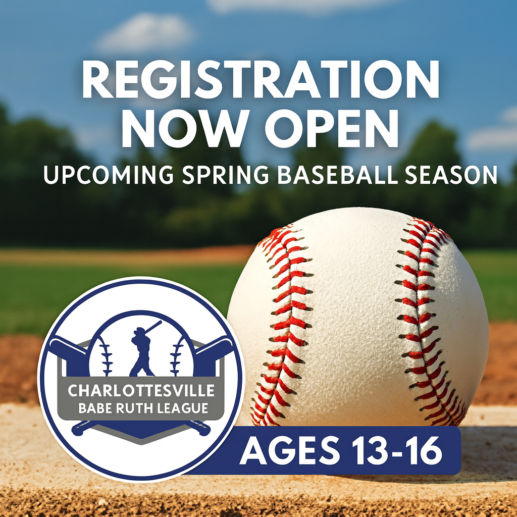 The Charlottesville Babe Ruth League offers recreational and competitive baseball opportunities to boys and girls ages 13 through 18 in the Charlottesville area.